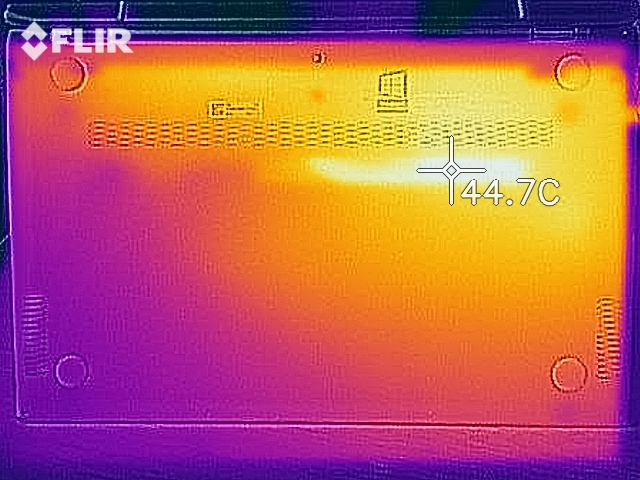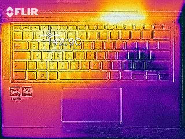 (+) Die Handballen und der Touchpad-Bereich sind mit gemessenen 29.4 °C kühler als die typische Hauttemperatur und fühlen sich dadurch kühl an.