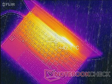 (±) Die Handballen und der Touchpad-Bereich können sehr heiß werden mit maximal 37.2 °C.