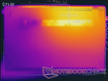(±) Auf der Unterseite messen wir eine maximalen Wert von 44.4 °C (im Vergleich zum Durchschnitt von 39.2 °C).