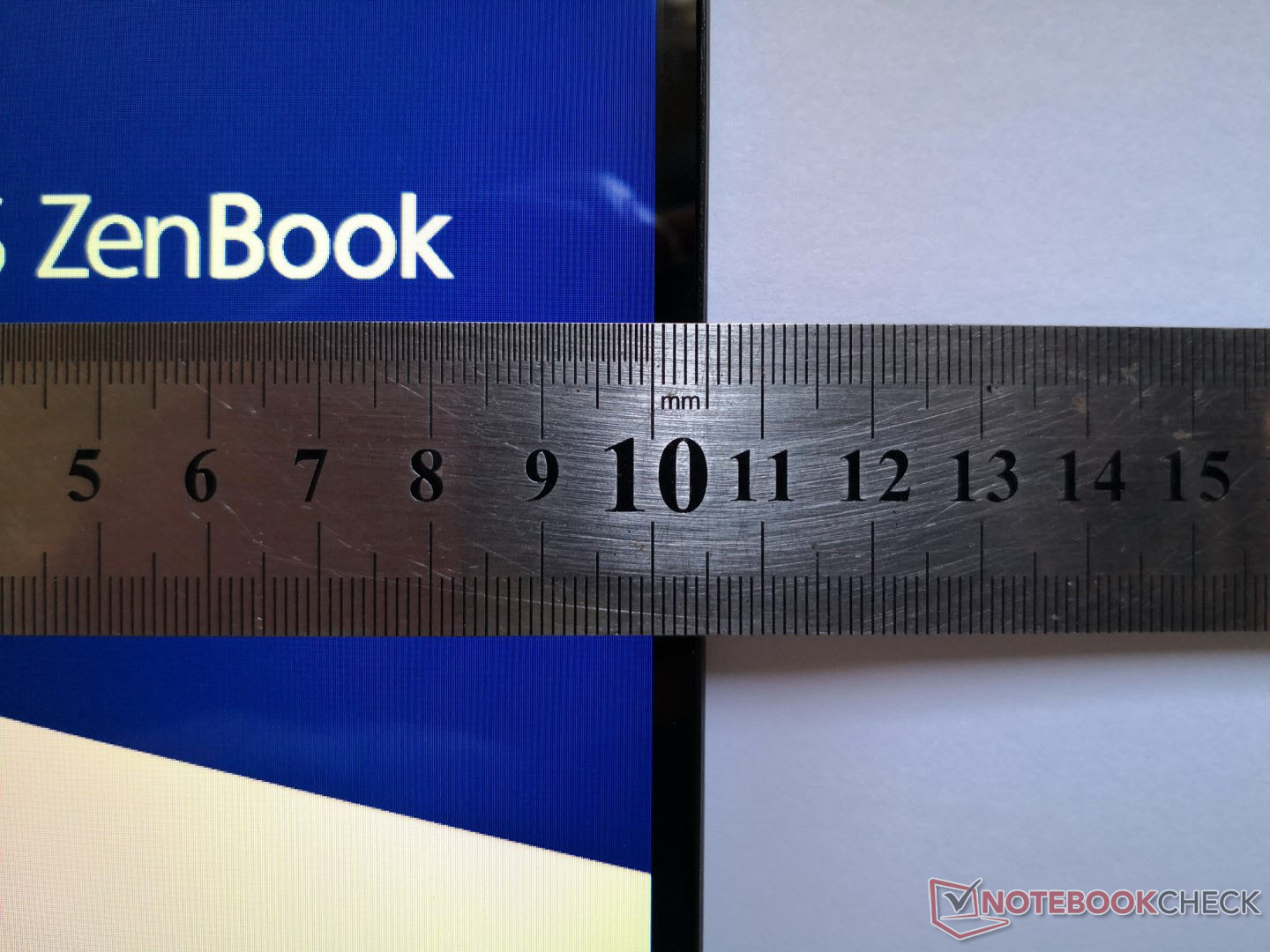 Die äußerst schmalen Displayränder an allen vier Seiten (statt nur links und rechts wie bei den meisten anderen Laptops) tragen dazu bei, dass das ZenBook 14 eine kleinere Grundfläche hat als viele Konkurrenzprodukte. Gewicht und Dicke sind trotz der integrierten ScreenPad-Funktionalität ansonsten vergleichbar.