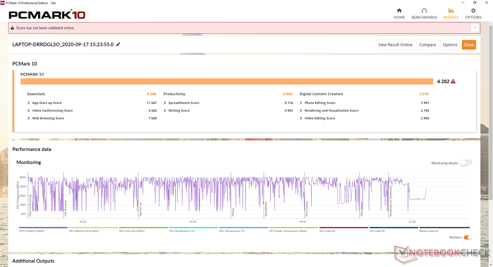 Der Akkubetrieb hat keinen Einfluss auf die Leistung. Ein 3DMark-11-Test mit Akkustrom liefert sehr ähnliche Physik- und Grafikwerte wie der gleiche Test mit angeschlossenem Netzteil.