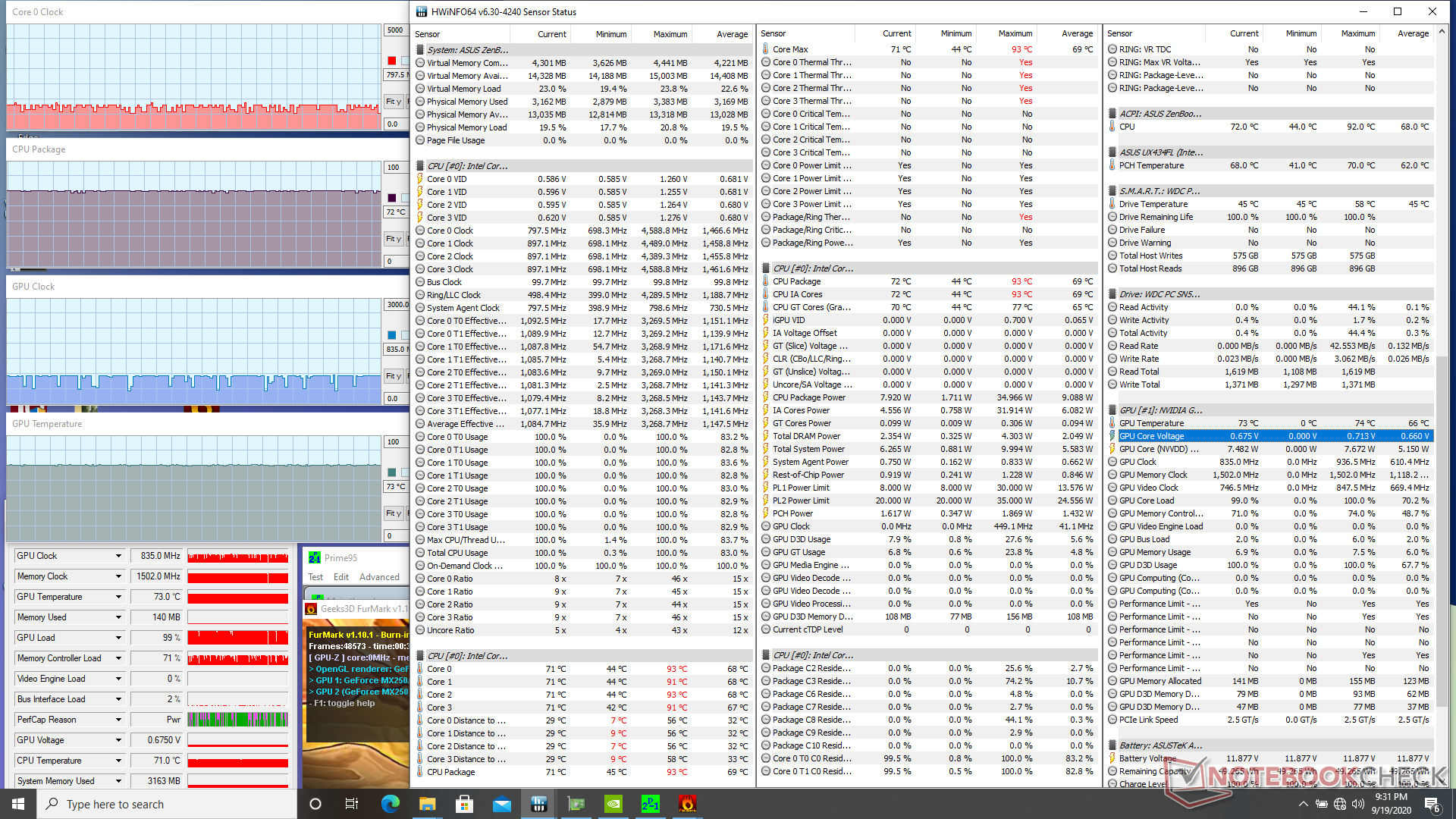 | Prime95 + FurMark Stress | 0.9 - 1.2 | 400 - 835 | 72 | 73 |