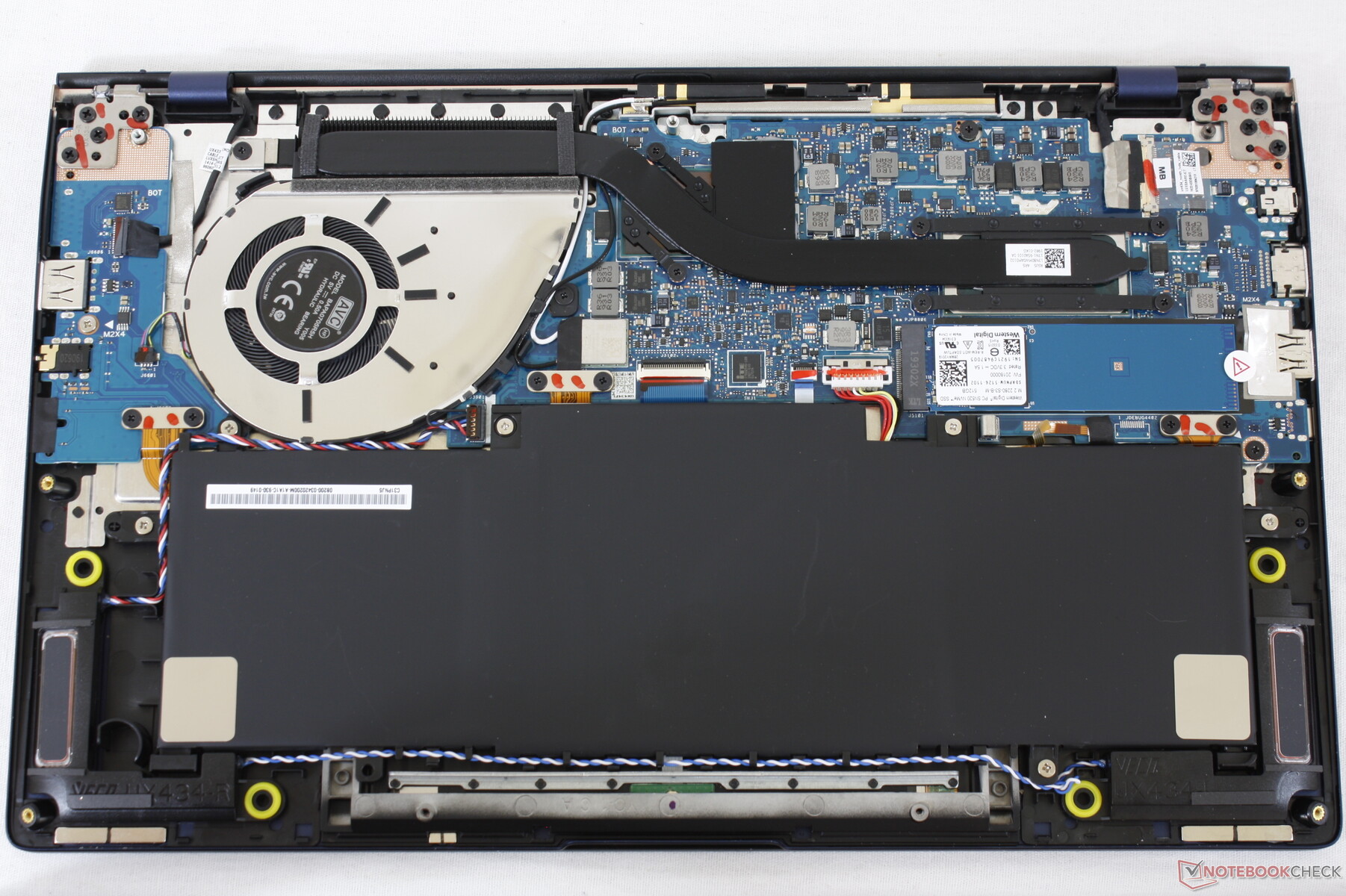 Die Laufzeit ist mit fast 7,5 Stunden realer WLAN-Nutzung bei aktivem ScreenPad respektabel. Dies ist etwa eine oder zwei Stunden kürzer als bei vielen anderen 14-Zoll-Subnotebooks, einschließlich dem Asus-eigenen VivoBook S14, was der Preis ist, den man für einen eingebauten zweiten Touchscreen/Monitor zahlt.