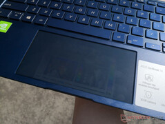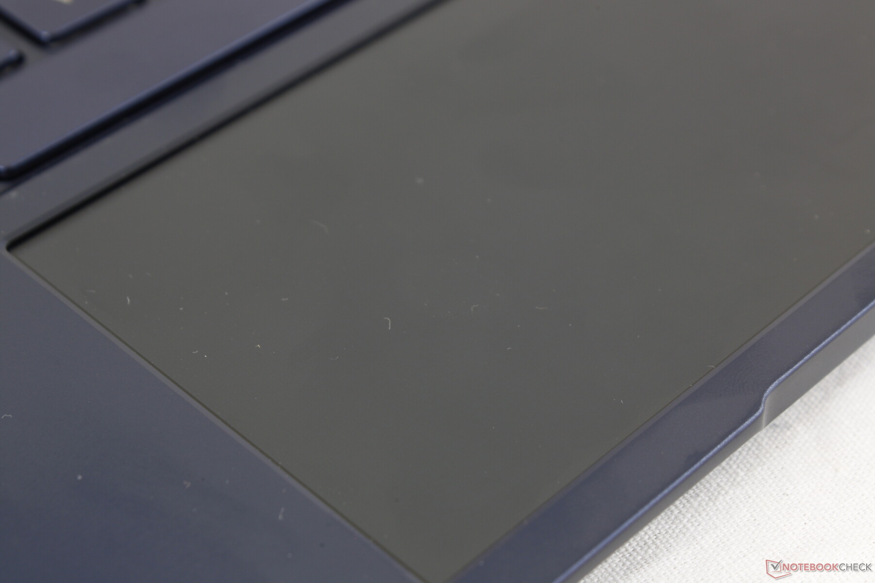 Wie bei einem normalen Clickpad ist auch die Oberfläche des Multi-Touch-ScreenPads glatt, mit ausgezeichneten Gleiteigenschaften und nur minimalem Widerstand auch bei langsamer Bewegung. Es fühlt sich an wie ein herkömmliches Clickpad anstelle eines Tablett-Touchscreens, da das Overlay matt und nicht glänzend ist. Die integrierten Maustasten sind jedoch leider flach und geben kaum Rückmeldung.