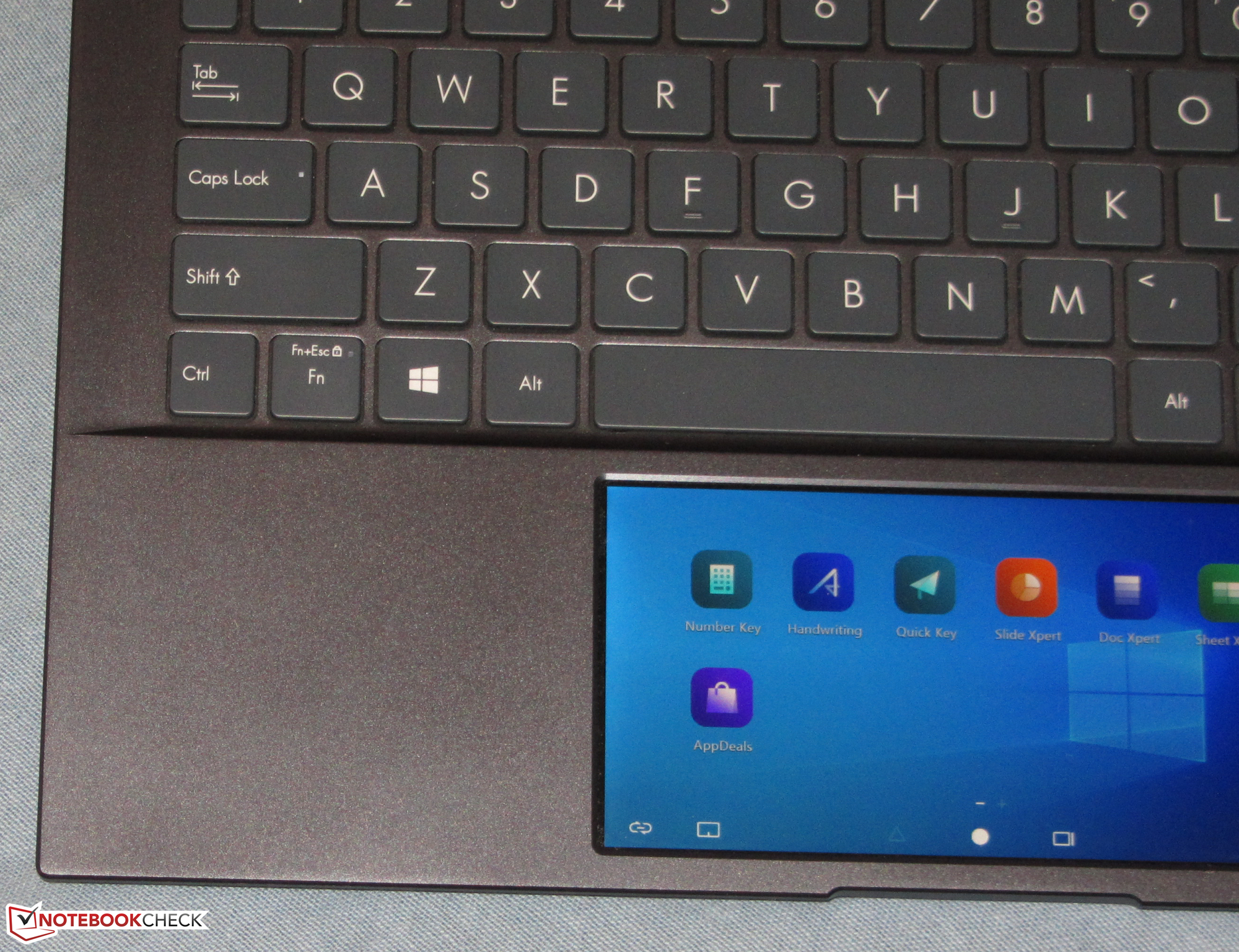 Asus liefert einige kleine Anwendungen mit, die einen Eindruck über die Möglichkeiten des Screenpads liefern. So stehen ein Taschenrechner und ein Feld zur handschriftlichen Eingabe zur Verfügung. Die Quick-Key-Anwendung bündelt häufig verwendete Funktionen (Ausschneiden, Kopieren, Einfügen).
