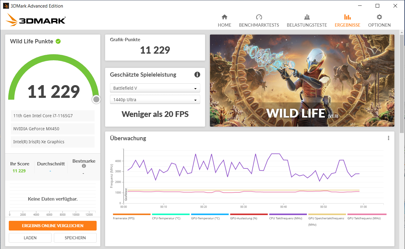 | Asus Zenbook 14 UX435EG i7-1165G7, GeForce MX450 | MSI Prestige 14 Evo A11M-005 i7-1185G7, Iris Xe G7 96EUs | Huawei MateBook 14 2020 Intel i7-10510U, GeForce MX350 | Lenovo Yoga Slim 7-14IIL05 i7-1065G7, GeForce MX350 | Durchschnittliche NVIDIA GeForce MX450 | Durchschnitt der Klasse Multimedia | |
