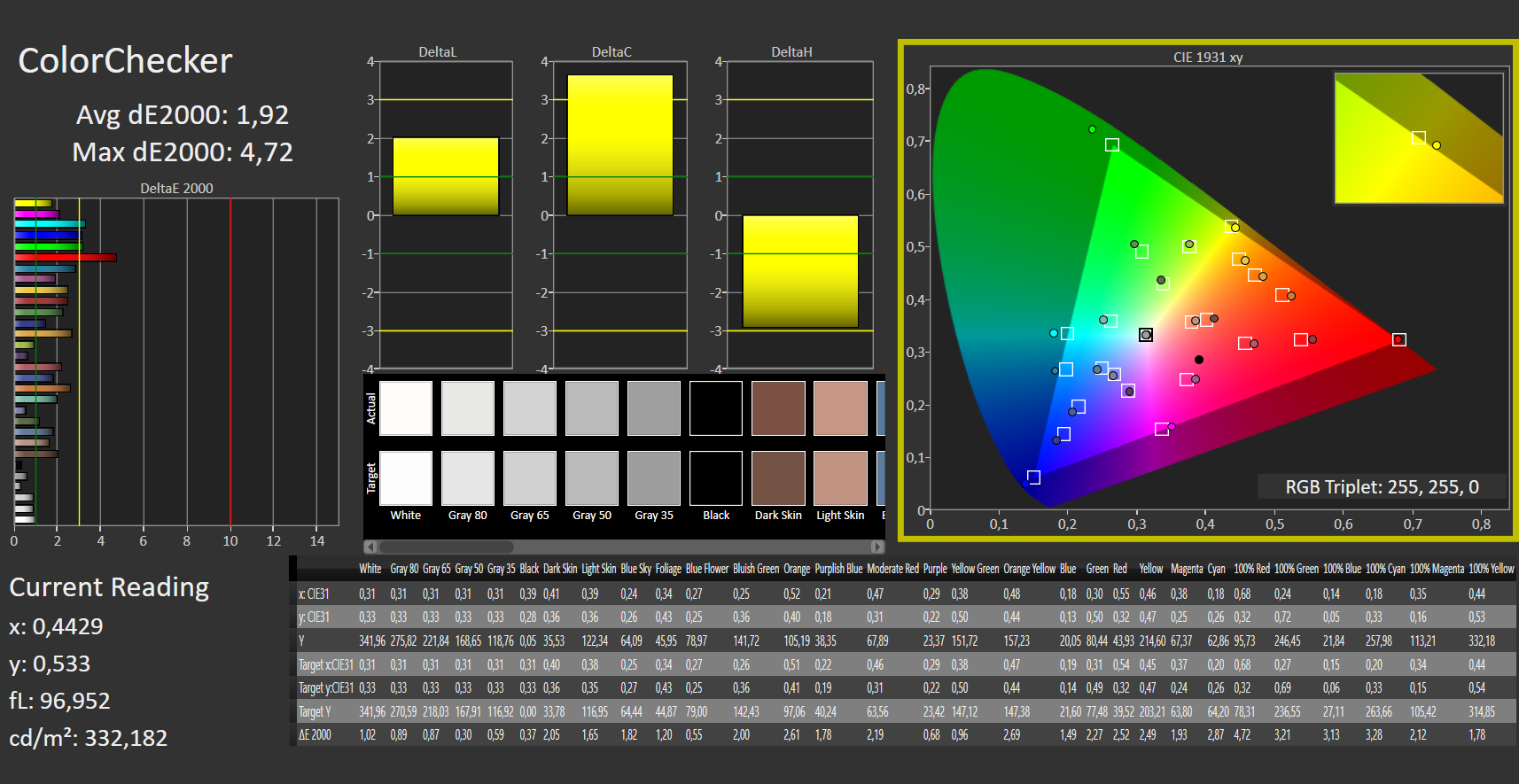 ΔE ColorChecker Calman: 1.92 | ∀{0.5-29.43 Ø4.78}