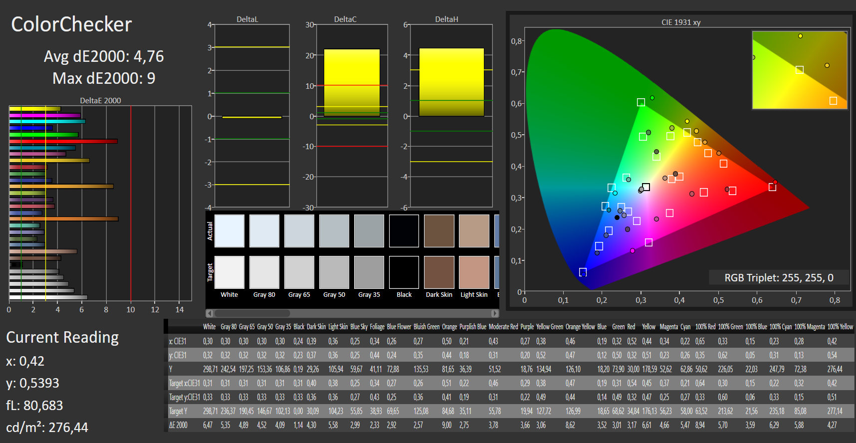 ΔE ColorChecker Calman: 4.76 | ∀{0.5-29.43 Ø4.78}