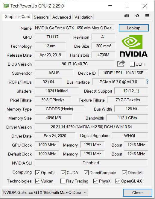 | 85.2 % v7 (old) | 03 / 2020 | Asus ZenBook 15 UX534FTC-A8190T i7-10510U, GeForce GTX 1650 Max-Q | 1.6 kg | 18.9 mm | 15.60" | 1920x1080 | |