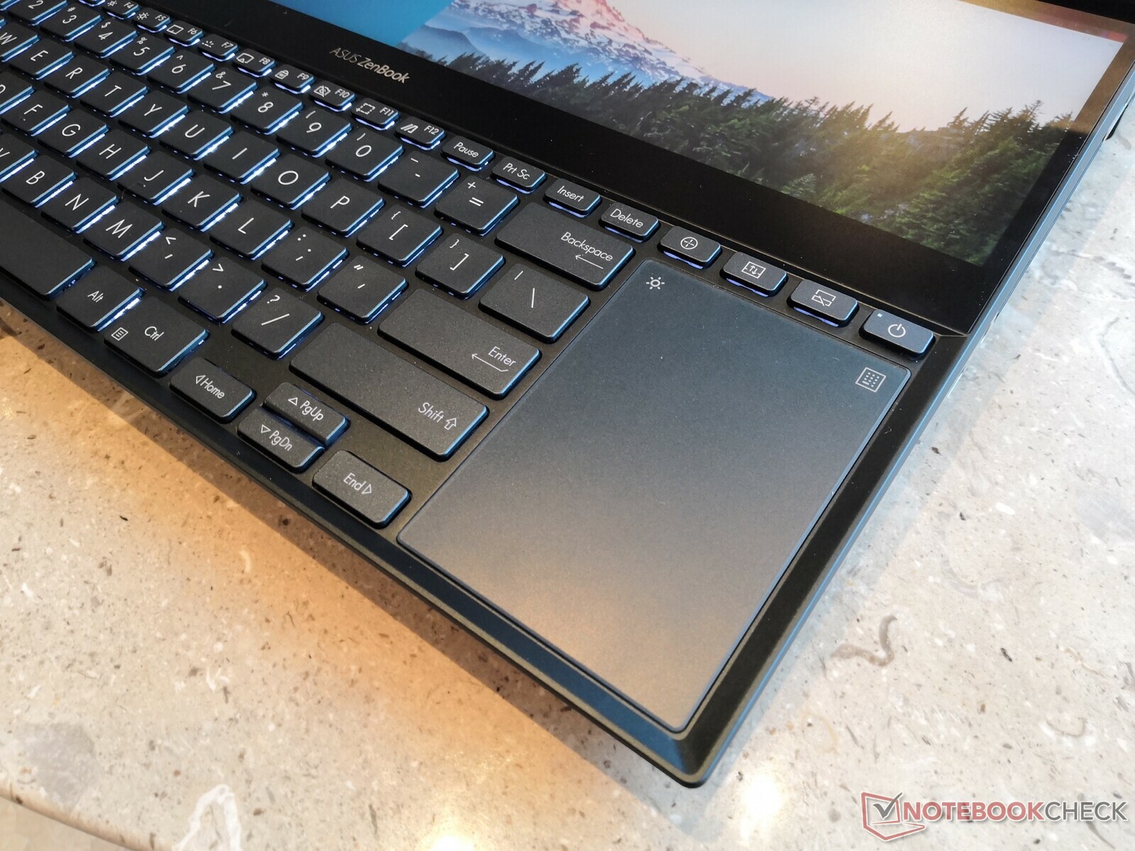 Das ZenBook Duo kommt als etwas kleinere, günstigere Variante für Nutzer, welche das ScreenPad Plus nutzen möchten, die Leistung und Ausstattung des ZenBook Duo aber nicht benötigen. Asus spart hier sowohl bei den Displays als auch bei der Leistung. Beim 14 Zoll großen Hauptbildschirm wird hier nicht auf OLED gesetzt, die Auflösung liegt auch "nur" bei Full HD (1.920 x 1.080 Pixel) – ohne Touch-Funktionalität. Das ScreenPad Plus ist hier mit 12,6 Zoll etwas kleiner, die Auflösung beträgt wie beim Hauptdisplay 1.920 Pixel in der Breite.