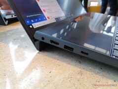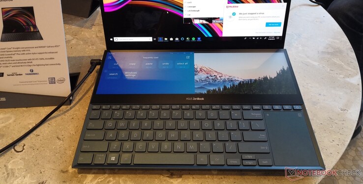 Schade ist allerdings, dass das Netzteil nicht auf USB-C, sondern auf einen DC-in-Anschluss setzt – somit ist es nicht möglich, das ZenBook Duo über eine Dockingstation aufzuladen, obwohl die benötigten 90 Watt über USB-C durchaus machbar wären. Mit einer Dicke von 19 mm bei einem Gewicht von 1,8 kg ist das Gerät auch etwas kompakter als sein teurerer Bruder.