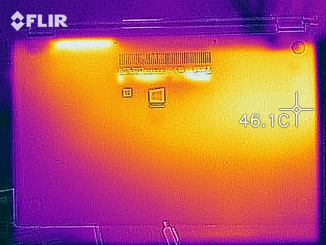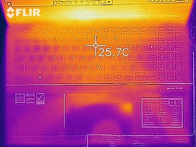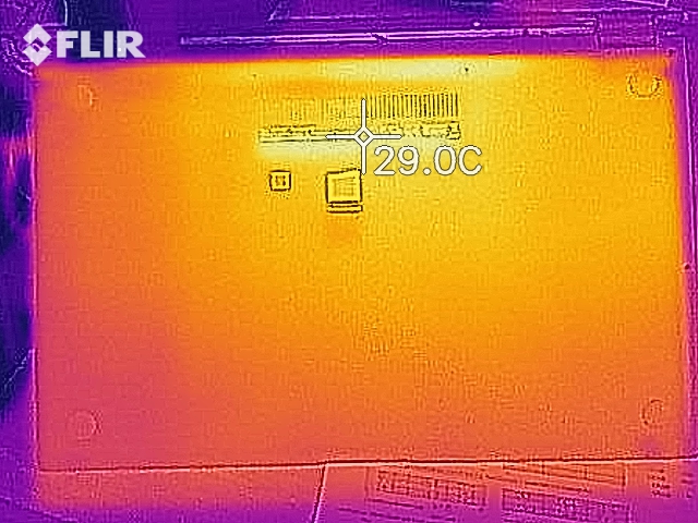 (+) Die Handballen und der Touchpad-Bereich sind mit gemessenen 31.6 °C kühler als die typische Hauttemperatur und fühlen sich dadurch kühl an.