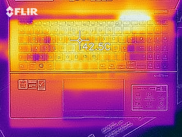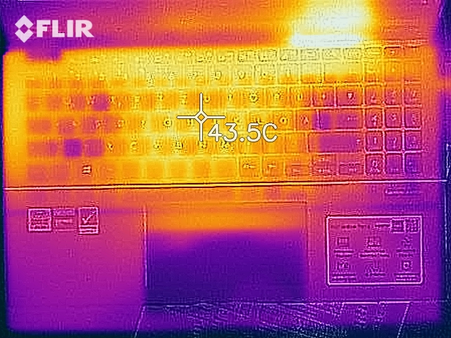 Sonderlich stark erwärmt sich der Asus-Computer nicht. Während des Stresstests registrieren wir an einigen Messpunkten Temperaturen knapp oberhalb von 40 Grad Celsius. Während der Durchführung des Witcher-3-Tests (das Spiel läuft 1 Stunde in Full-HD-Auflösung und maximalen Qualitätseinstellungen) fällt die Erwärmung etwas geringer aus. Im Alltagsbetrieb liegen die Werte im grünen Bereich.