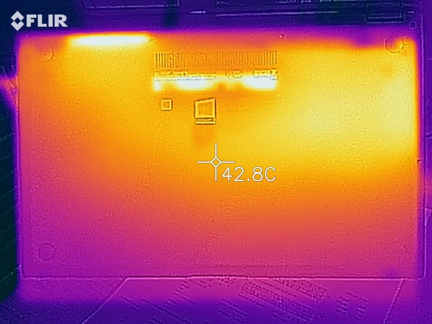 (±) Auf der Unterseite messen wir eine maximalen Wert von 41.5 °C (im Vergleich zum Durchschnitt von 36.8 °C).