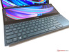 Neben den beiden Touchscreens kann man natürlich auch die Tastatur und das TouchPad für Eingaben nutzen, die unverändert vom Vorgänger übernommen wurden. Das Tippgefühl ist sehr angenehm und der Hub mit 1,4 mm auch nicht zu kurz. Die Tastatur ist beleuchtet und lässt sich auch in dunklen Umgebungen sehr gut nutzen. Durch den Wegfall der Handballenauflage benötigt man auf dem Schreibtisch etwas mehr Platz, um komfortabel zu schreiben. Das kann vor allem bei begrenztem Platzangebot (z. B. Zug) einschränken, allerdings ist das ZenBook Pro Duo 15 sowieso nicht das mobilste Gerät.