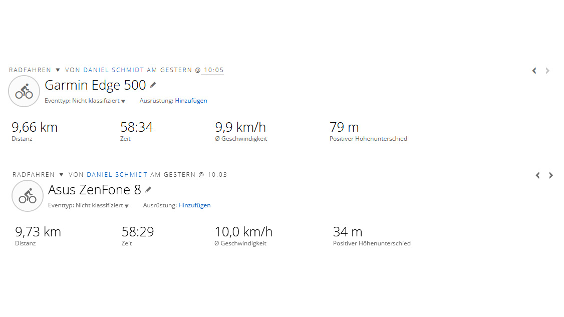 Auf unserer obligatorischen Fahrradtour zeigt die mit dem Aus Zenfone 8 aufgezeichnete Strecke auf langen Geraden und in Kurven eine geringere Abweichung als unser Referenzgerät Garmin Edge 500.