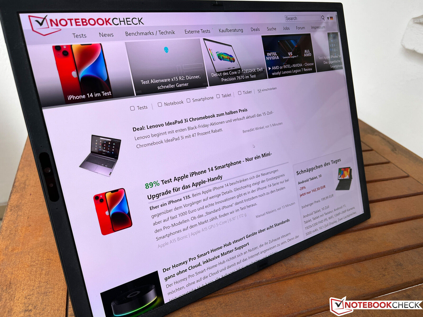 Die Akkulaufzeit hängt in der Praxis stark von dem dargestellten Inhalt ab, denn bei hellen Bildern benötigen OLED-Bildschirme einfach mehr Strom. Das sieht man auch sehr gut an der großen Diskrepanz zwischen dem Video-Test und unserem WLAN-Test, bei dem hauptsächlich helle Webseiten dargestellt werden. In beiden Tests ist die Helligkeit auf 150 cd/m² eingestellt (entspricht beim Testgerät 73 % der maximalen Helligkeit) und im Videotest ist die Ausdauer mit 11 Stunden auch sehr gut, im WLAN-Test sind es aber nur 06:43 Stunden. Bei der maximalen SDR-Helligkeit sind es sogar noch einmal 2 Stunden weniger (04:39 Stunden). Unterwegs kann man im Laptop-Modus allerdings von einer längeren Laufzeit profitieren, denn wenn der untere Bildschirmteil abgeschaltet ist, läuft unser WLAN-Test bei 150 cd/m² für gute 11 Stunden.