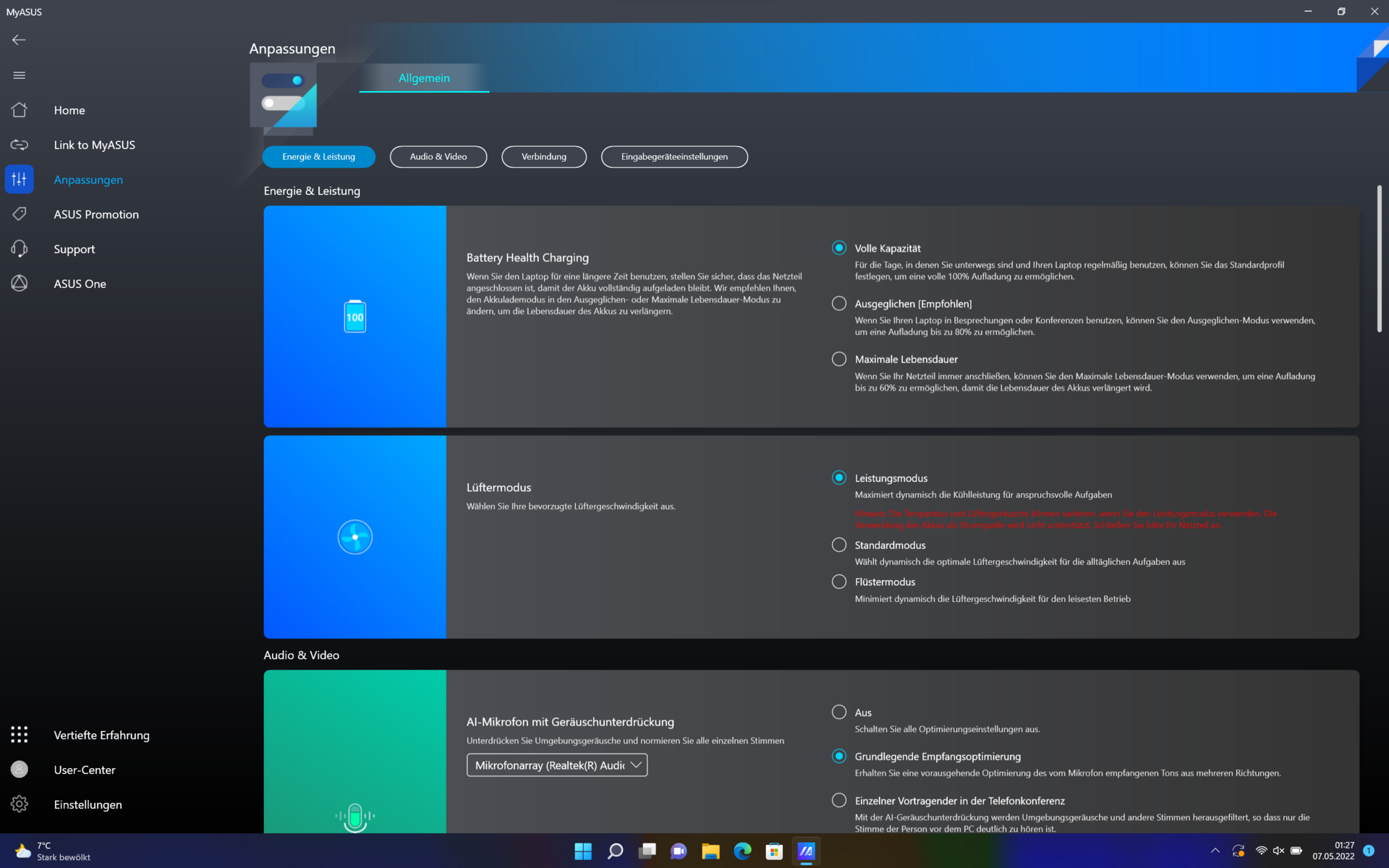 Vergleicht man unser Panel nun mit der Konkurrenz, schneidet diese in nahezu allen Kategorien schlechter ab, abgesehen von der Helligkeit, dort platziert sich unser Test-Panel im Mittelfeld. Mit der MyAsus Software lassen sich einige Einstellungen in Bezug auf das Display vornehmen. So kann man zum Beispiel die Farben noch lebendiger wirken lassen oder auch mal den Blaulichtfilter verstärken durch die Einstellung "Eye Care".