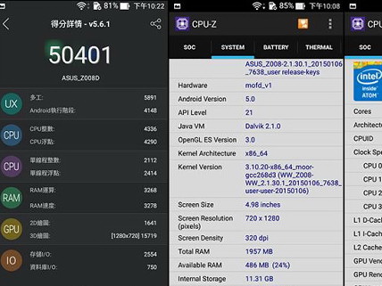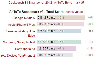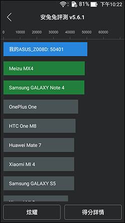 Entscheidend für den hohen Score des Zenfone 2 war laut den vorliegenden Screenshots die bewertete Grafikleistung der G6430. In der angeführten Vergleichsliste rangiert das Zenfone 2 demnach vor dem Meizu MX4 und dem Galaxy Note 4 von Samsung. Bei Vergleichen sollte hier berücksichtigt werden, dass für das Asus Zenfone 2 in den Screenshots lediglich eine HD-Auflösung von 1280 x 720 Pixeln ausgewiesen wird. Das Meizu MX4 verfügt über ein Full-HD-Display, das Galaxy Note 4 sogar über ein Quad-HD-Panel mit 2560 x 1440 Bildpunkten.