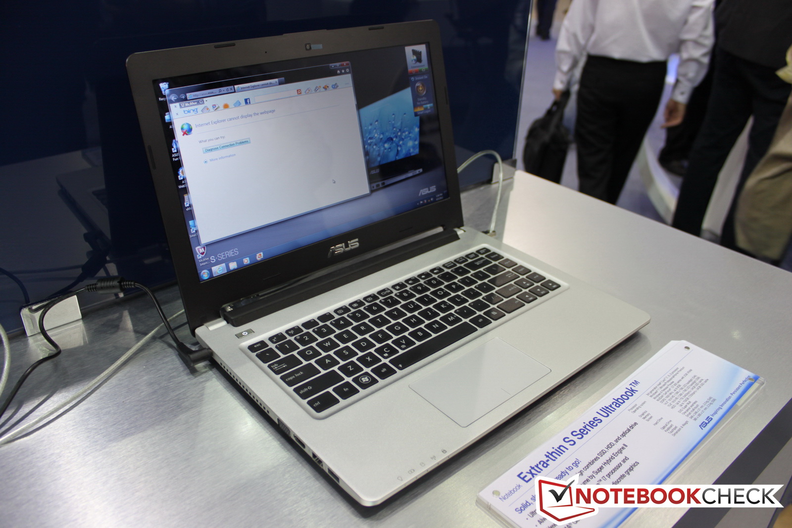 Das Gehäuse der Asus Serie S Ultrabooks ist aus Plastik mit einem Alu-Palmrest und -Displaydeckel. Die ausgestellten Modelle sind von der Optik her recht ansprechend gestaltet und weisen eine insgesamt gute Stabilität auf. Die Wertigkeit inklusive Haptik ist aber bestenfalls durchschnittlich. Das Display ist subjektiv bewertet ebenfalls Durchschnitt: geringe Helligkeit, eher deutliche Blickwinkelabhängigkeit, sehr starke Spiegelungen im Display. Die Tastatur ist bei beiden Notebooks auffallend kurzhubig - gewöhnungsbedürftig.