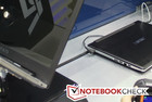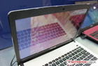 Interessant: Die ausgestellten Samples hatten entweder ein mattes oder ein spiegelndes (Glossy) Display. Laut Auskunft von Asus vor Ort wird es auch beide Varianten im Handel geben. Die Auflösung bleibt bei lediglich 1.366 x 768 Pixeln. Subjektiv wirkte das matte Panel sehr angenehm, da keine Spiegelungen den Bildeindruck störten. Dafür ließ der Kontrast aber zu wünschen übrig. Das Glossy-Panel brillierte mit satten Farben, von denen wegen der extrem starken Lichtflecken aber wenig zu sehen war.