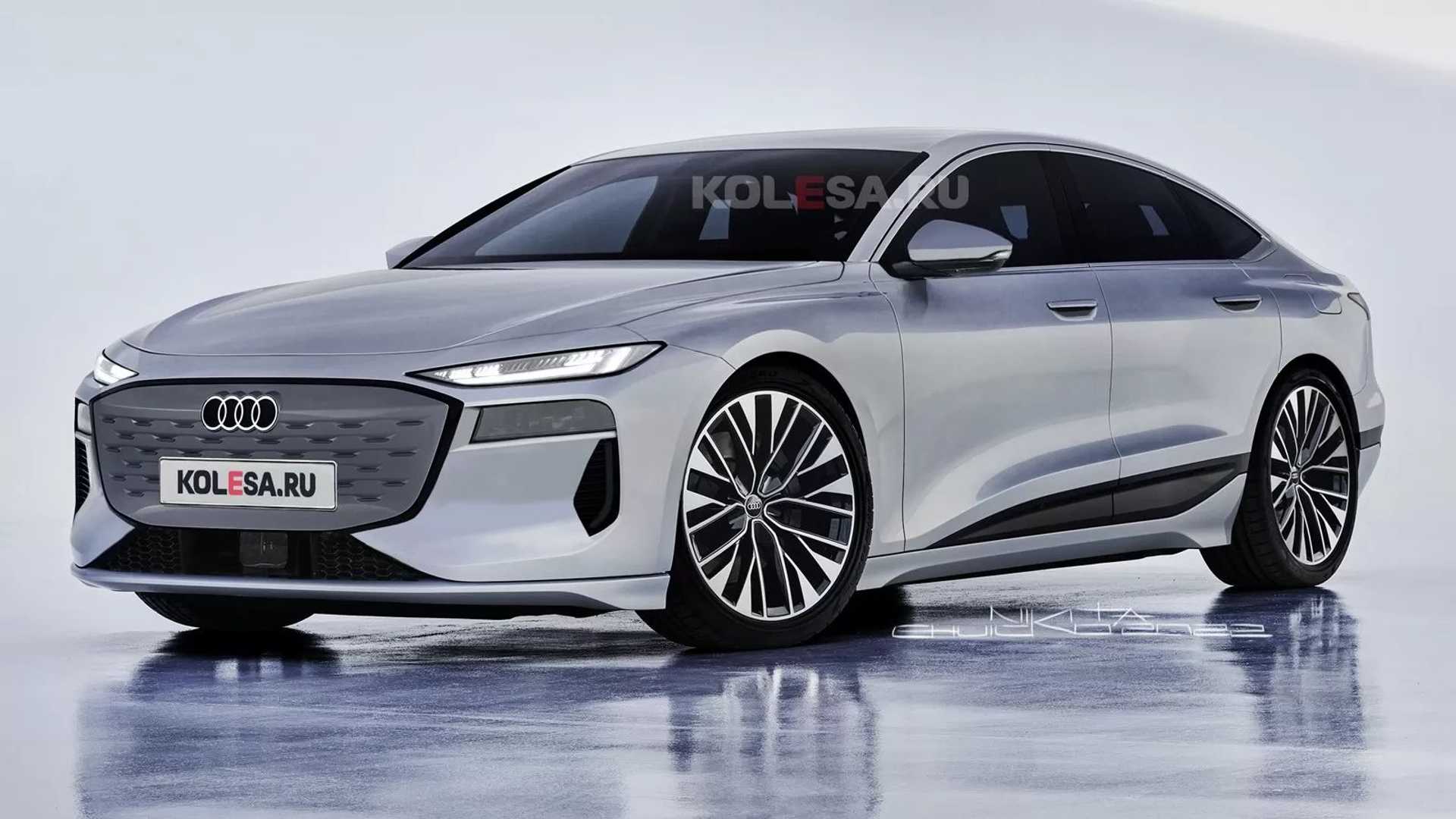 Nachdem der Hersteller bereits einen frühen Prototypen des Audi A6 e-tron offiziell gezeigt hat, haben sich die russischen Grafikdesigner von Kolesa nun ans Werk gemacht und die Studie in ein vermutlich etwas serienreiferes Elektroauto umgewandelt. Das Ergebnis ist auf den unten eingebundenen Renderbildern zu begutachten. An der Front des Audi A6 e-tron wurden dabei zum Beispiel die riesigen seitlichen Lufteinlässe des Prototyps deutlich verkleinert.
