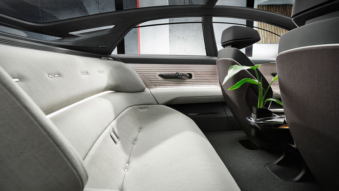 Noch mehr im Fokus stehen aber die beiden um mindestens 90 Grad drehbaren Einzelsitze in der ersten Reihe, die sich zudem weit zurückfahren lassen. Denn dank dem autonom fahrenden Fahrzeug wird der Fahrer zum Mitfahrer. "Unser Anspruch muss es sein, dass sich ein Audi immer anfühlt wie ein Audi, auch wenn der Fahrer perspektivisch zum Passagier wird," sagt Vorstandschef Markus Duesmann. So werden im selbstfahrenden Modus nach Level 4 einfach die Bedienelemente ausgeblendet und auch das Lenkrad verschwindet.