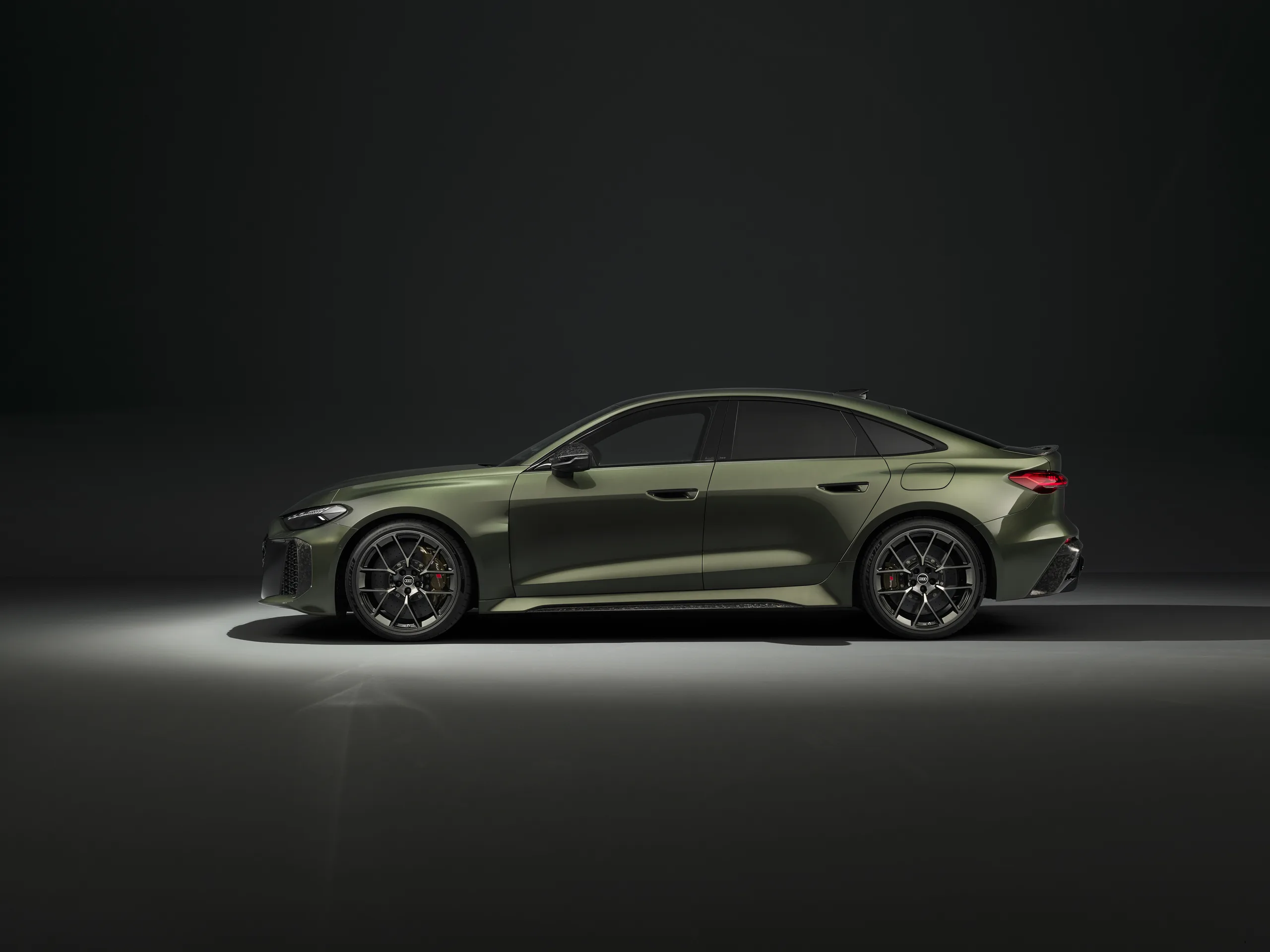 Ingolstadt verpasst dem Audi RS 5 einen extrem überarbeiteten 2,9-Liter-V6-TFSI-Biturbo. Dieser Verbrenner drückt für sich genommen schon 510 PS auf die Kurbelwelle. Zusätzlich flanscht man eine 130 kW starke E-Maschine direkt in das Achtgang-tiptronic-Getriebe des Audi RS 5 PHEV. Wenn beide Herzen im Einklang schlagen, wuchtet das System gewaltige 639 PS sowie 825 Nm Drehmoment auf den Asphalt. Tempo 100 fällt im Audi RS 5 aus dem Stand nach exakt 3,6 Sekunden. Wer das optionale Audi Sport Paket ordert, darf das Biest auf bis zu 285 km/h peitschen.