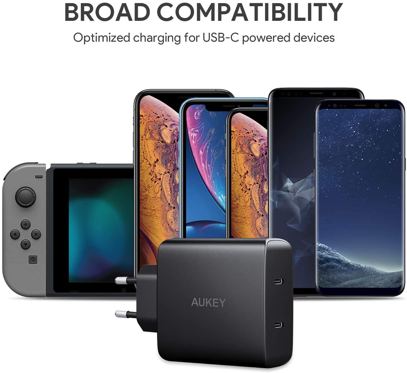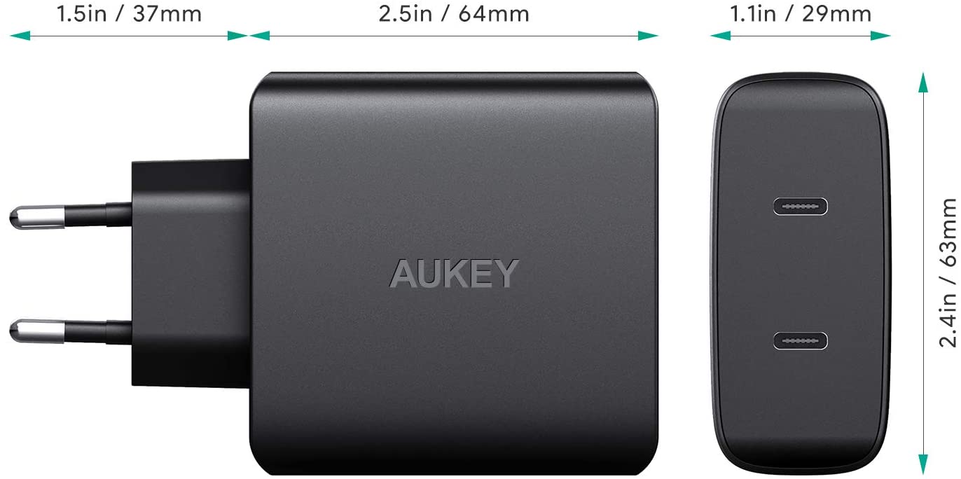 Aukey PA-D3: 60 Watt, 2-Port, USB-C, PD-Wandladegerät