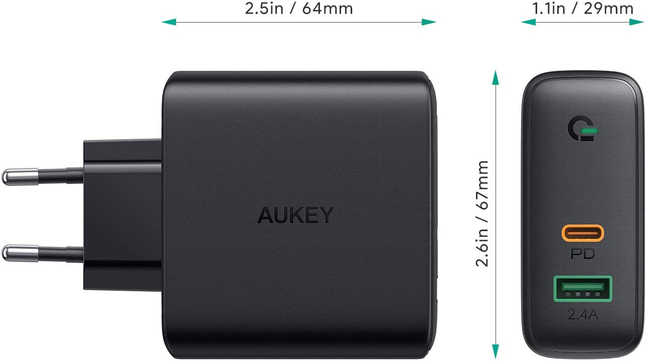 Aukey PA-TA06: 18 Watt, 2-Port, USB-C, PD-Reiseladegerät