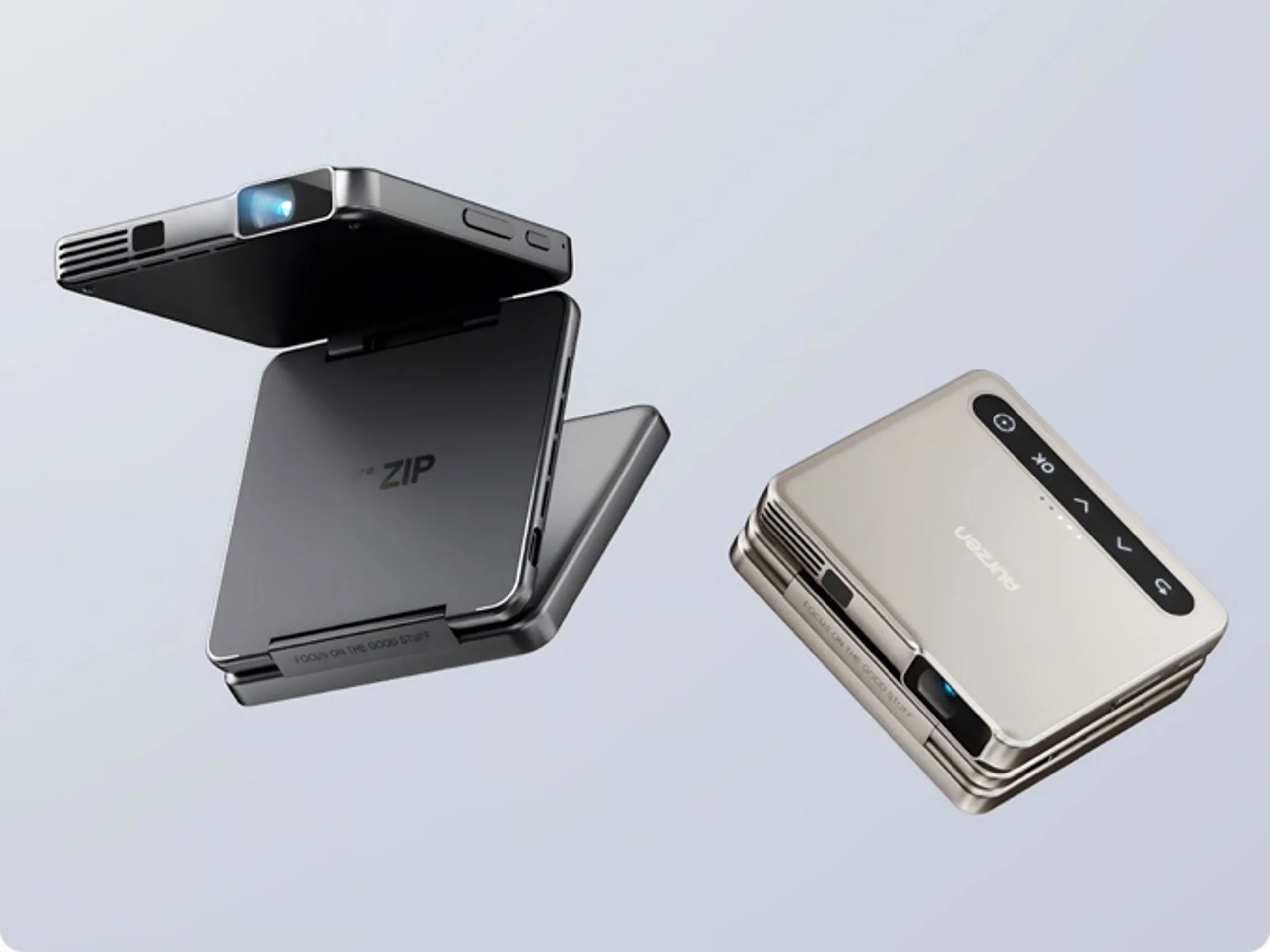 In den letzten Jahren ist das Angebot an Beamern tendenziell eher gewachsen als kleiner geworden. Inzwischen gibt es auch kompakte Projektoren, welche sich etwa gut mitnehmen lassen und sich somit gut für spontane Präsentationen - eher im kleinen Kreis - oder Filmabende eignen können. Der Hersteller Aurzen hat mit dem Zip nun ein neues System vorgestellt, welches besonders kompakt ist und sich wie ein Foldable falten lässt. Konkret kann der Aurzen Zip gleich zweimal gefaltet werden - anders als bei einem faltbaren Smartphone kann Aurzen aber beim Zip ganz klassische Scharniere verwenden, im Vergleich zu einem gebogenen Display dürfte dies technologisch weniger anspruchsvoll sein. Das Resultat ist wie bei einem Foldable: Der Beamer ist weniger lang beziehungsweise breit, wird aber dadurch im gefaltenen Zustand dicker - etwa mit dem kolportierten Tri-Foldable von Samsung ergibt sich somit zumindest konzeptionell eine gewisse Ähnlichkeit. Zudem ergibt sich durch die Scharniere gleich ein Ständer.