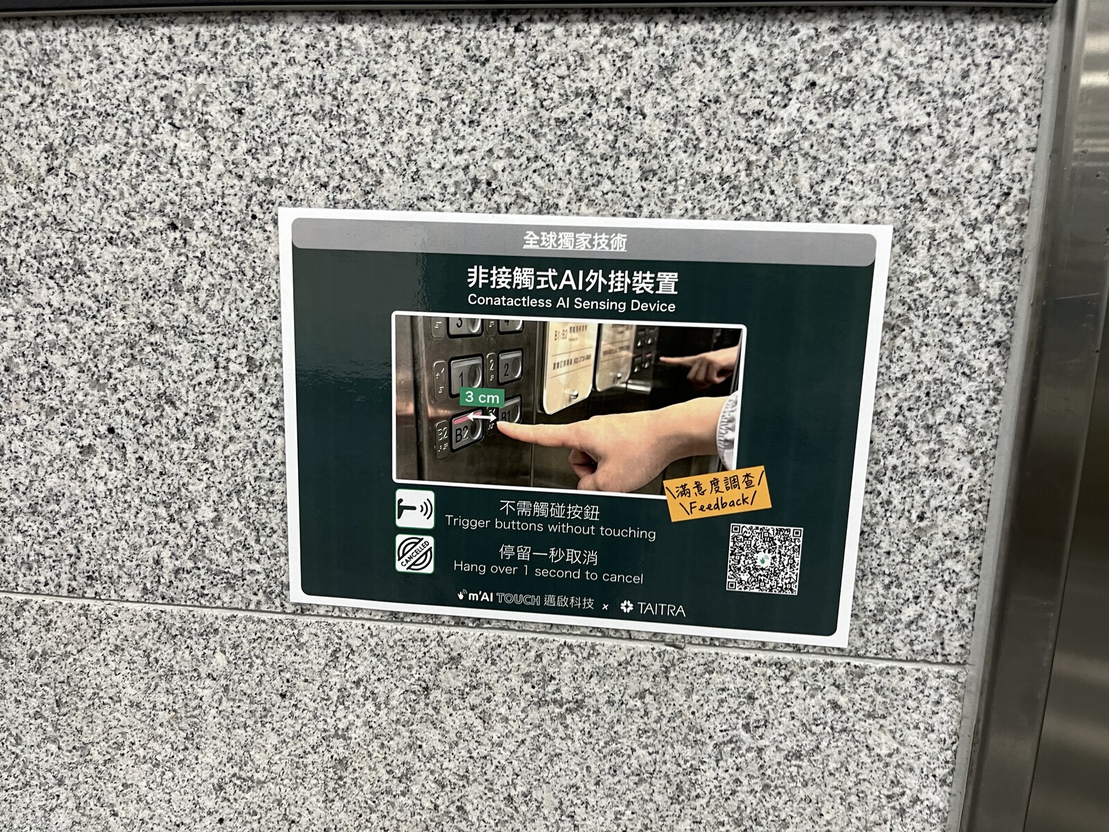 Wer aktuell die Halle 1 (Tainex 1) des Nangang Exhibition Centers besucht, in dem die Computex Taipei stattfindet, der wird an den Fahrstühlen vielleicht beim Aufsuchen eines Fahrstuhls etwas sehr ungewöhnliches entdecken. Ein Schild weist in chinesischer und englischer Sprache auf ein Contactless AI Sensing Device hin. Es handelt sich dabei um Fahrstuhlknöpfe die nicht gedrückt werden müssen.