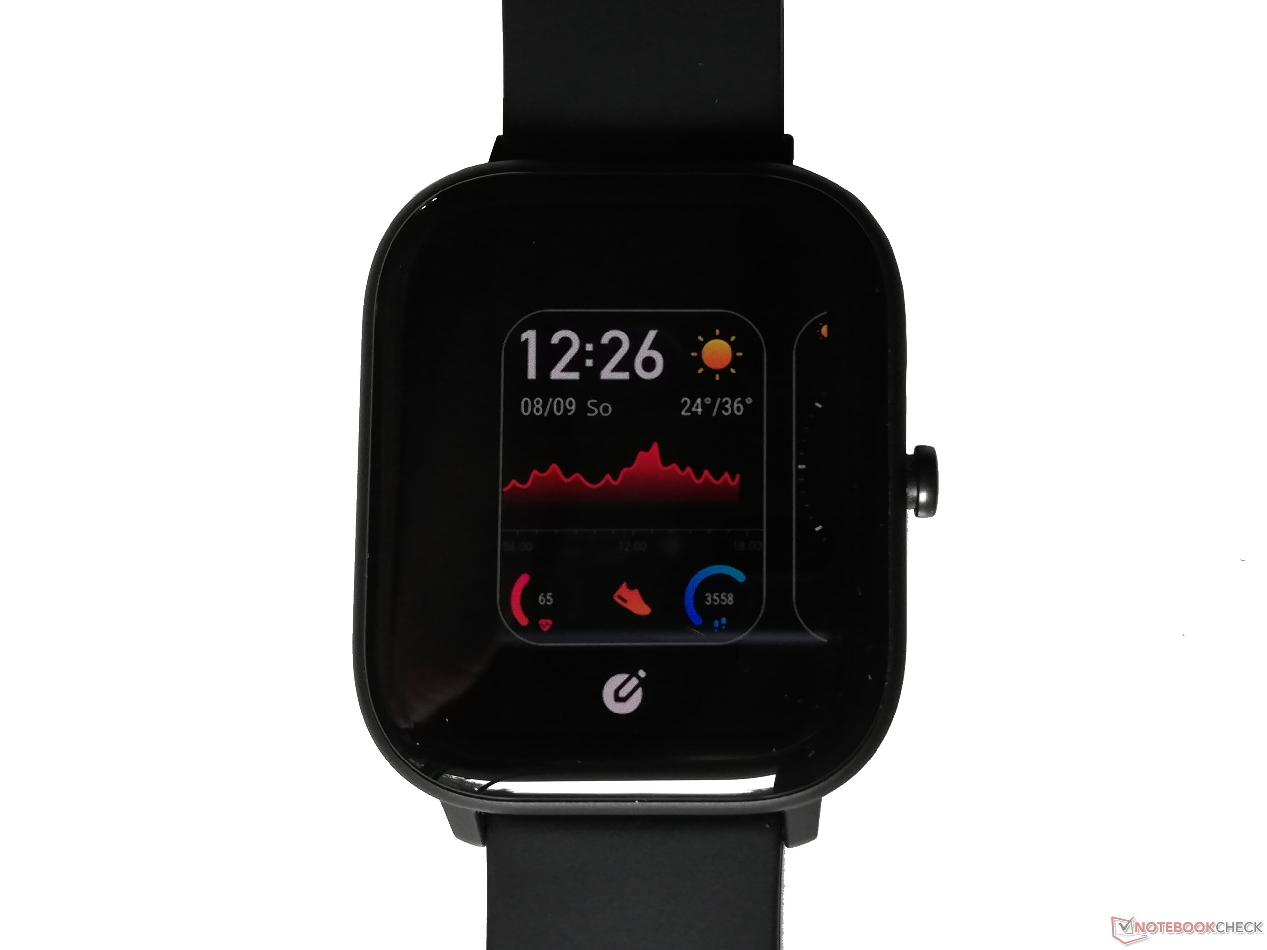Der Startbildschirm zeigt Uhrzeit, Datum und die Wetterprognose sowie den Akkustand, die bisher verbrauchten Kilokalorien und die Herzfrequenz. Mit Wischgesten nach links oder recht wechselt der Startbildschirm in einem Durchlauf vom Schrittzähler, zur detaillierten Herzfrequenzanzeige und wieder zurück zum Startbildschirm. Ein Wisch nach unten bringt das Menü zum Vorschein, indem sich nicht nur die Sport- und Aktivitätsliste findet, sondern auch eine App zum Steuern der Musik am Smartphone, ein Kompass, Timer-Funktionen und mehr. In einem gesonderten Einstellungsmenü lässt sich zudem der modular aufgebaute Startbildschirm anpassen oder eine alternative Anzeige mit "analogen" Uhrzeigern aktivieren. In der Smartphone-App können noch weitere Zifferblattdesigns heruntergeladen werden.