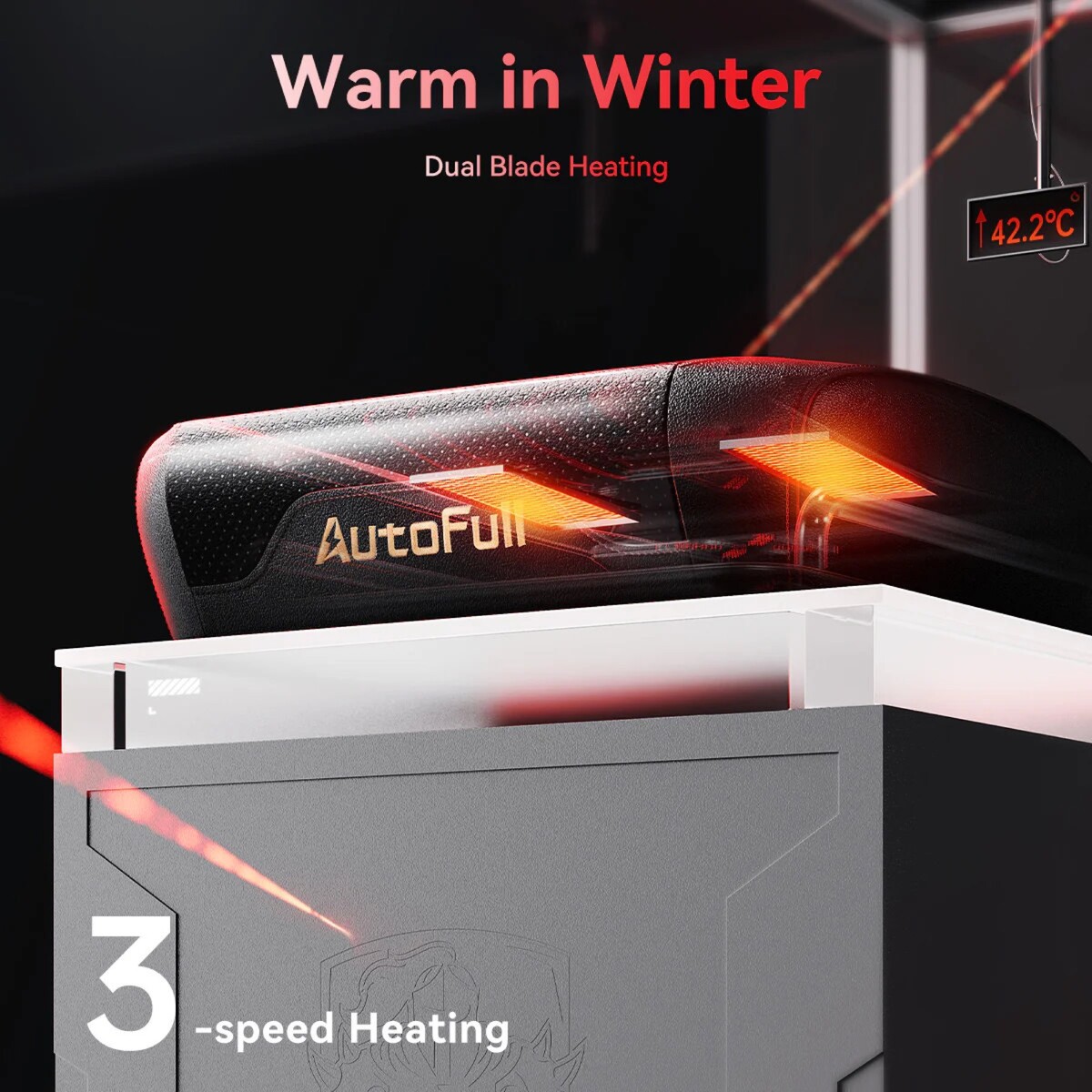 Im Detail bietet der M6 aber eine Reihe interessanter Features, angeführt von zwei großen Lüftern, die aufeinander gestapelt in der Mitte der Sitzfläche platziert werden. Durch die poröse Oberfläche des Sitzes soll so die Luftzirkulation angeregt werden, wodurch der Körper des Spielers gekühlt und so die Schweißbildung reduziert werden soll. Konkret spricht AutoFull von einer "56 Prozent niedrigeren Temperatur des Sitzes". Im Sitz verstecken sich auch zwei Heizelemente, welche diesen in 02:20 Minuten um 67 Prozent erwärmen sollen, nützlichere Angaben in Grad Celsius macht der Hersteller nicht.