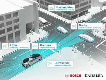 Bosch und Daimler beschleunigen die Entwicklung des vollautomatisierten und fahrerlosen Fahrens (SAE-Level 4/5) in der Stadt und stellen weitere entscheidende Weichen. Dr. Stephan Hönle, Produktbereichsleiter für automatisiertes Fahren bei Bosch bringt es auf den Punkt: