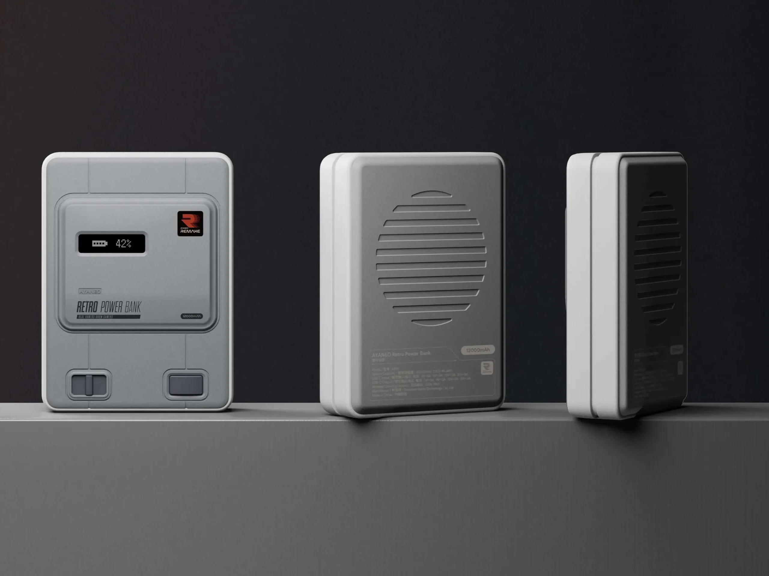 Mit der Ayaneo Retro Power Bank hat das Unternehmen auch eine Powerbank vorgestellt. Diese erinnert vom Design äußerst stark an einen SNES. Die Powerbank ist dabei mit einem Display ausgestattet, welches über den aktuellen Ladestand informieren soll. Den bislang veröffentlichten Fotos zufolge sind mindestens zwei USB Typ C-Ports verbaut. Einer der beiden Ports kann nur zur Ausgabe von elektrischer Energie genutzt werden, der zweite Port soll sowohl zur Ladung als auch zur Entladung genutzt werden.