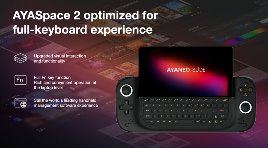 Ayaneo hat den Ayaneo Slide bereits mehrmals angeteasert, sich nun aber umfangreicher zum Modell geäußert und auch Änderungen an der Ausstattung kommuniziert. Die wahrscheinlich wichtigste Neuerung: Das Modell soll jetzt einen aktuellen Prozessor beziehungsweise eine aktuelle APU mitbringen. Konkret spricht Ayaneo vom AMD Ryzen 7 7840U, welcher eine hohe Rechenleistung verspricht. Ein spezielles Kühlsystem wird beworben.