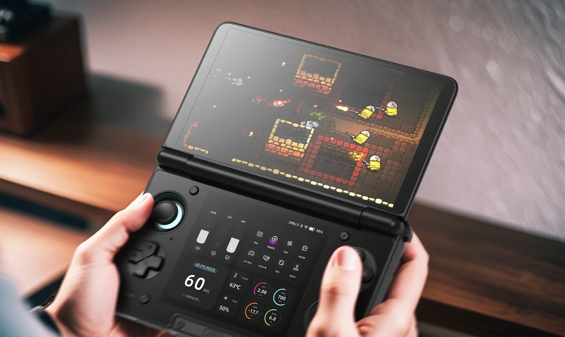 Das Zweitdisplay misst 3,92 Zoll, wobei Ayn in der unteren Hälfte des Gaming-Handhelds auf ein 60 Hz OLED-Panel mit einer Auflösung von 1.240 x 1.080 Pixel setzt. Ayn bietet den Handheld wahlweise mit Qualcomm Snapdragon 865 oder aber mit Snapdragon 8 Gen 2 an. Durch Android 13 ist der Handheld sowohl mit nativen Android-Spielen als auch mit Spiele-Streaming-Diensten und mit Emulatoren für Retro-Spiele kompatibel. Ein spezieller Launcher erlaubt es, die Gaming-Leistung anzupassen, je nachdem, ob Performance oder Akkulaufzeit Priorität hat.
