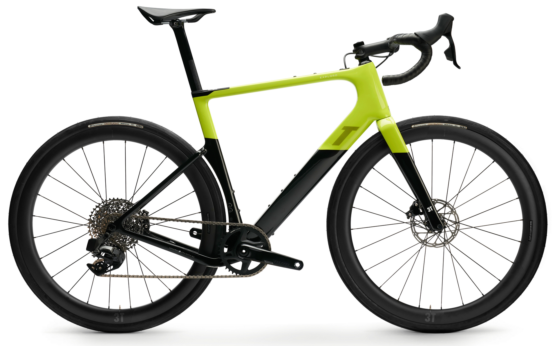 Alle BMW Exploro-Bikes verfügen über leichte Vollcarbon-Rahmen der Sorte Exploro Ultra respektive Ultra Boost (E-Bikes). Das Gewicht der mechanischen Fahrräder (Non-E-Bikes) mit 3T-Rahmen liegt zwischen 8 und 9 kg, während die Boost-Bikes (E-Bikes) zwischen 12 und 13 kg auf die Waage bringen. Die zentrale Baugruppe kommt nicht mehr von Shimano, sondern von SRAM: elektronische und kabellose 12-Gang-Schaltung (10-44) der Rival XPLR eTap AXS Gruppe von SRAM mit 40er-Kettenblatt. Passend dazu gibt es die Rival AXS Schalt- und Bremshebel und die hydraulischen AXS 160-mm-Scheibenbremsen. Die Bremsleitungen sind im Inneren des Rahmens verlegt.