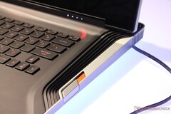 Ein interessantes Detail des Designs ist der Power Switch. Statt eines traditionellen Buttons wurde an der rechten Gehäuseseite ein Switch mit einer Feder angebracht. Wird dieser betätigt, geben die RGB LEDs im Notebook eine animierte Sequenz wieder, die das Aufwachen des Notebooks symbolisiert.