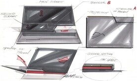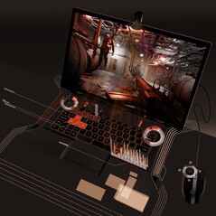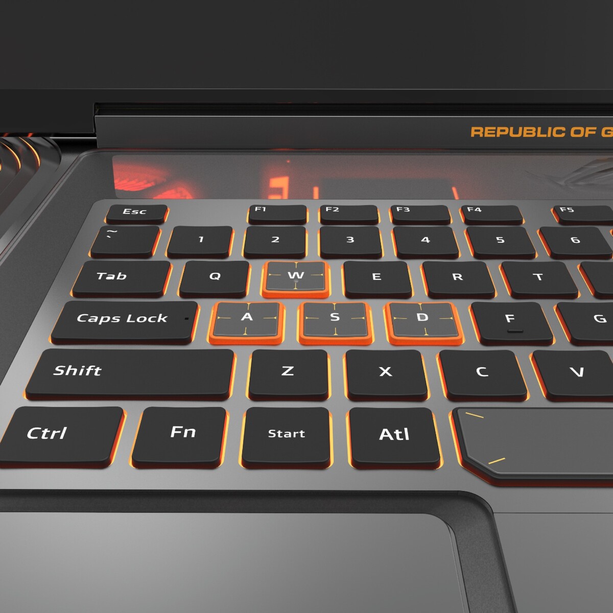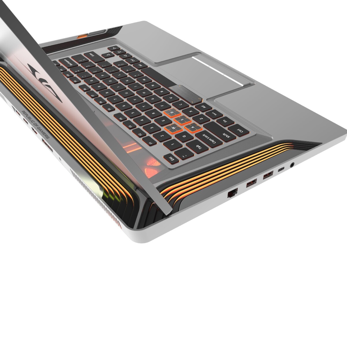 Die folgenden Bilder zeigen als Design-Konzept, welche Optik theoretisch für ein Gaming-Laptop möglich wäre. Praktisch ist von der gezeigten Optik nur ein kleiner Teil in die aktuelle Generation der Gaming-Laptops eingeflossen, etwa der Keystone oder die speziell markierten WASD-Tasten (Strix Hero, Strix Scar) oder das zweigeteilte Finish der Deckelrückseite.