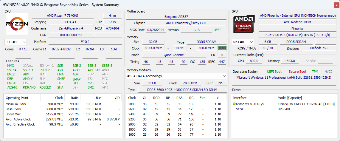 | 84.5 % v7 (old) | 05 / 2024 | BOSGAME M1 R7 7840HS, Radeon 780M | 766 g | 51 mm | x | ||