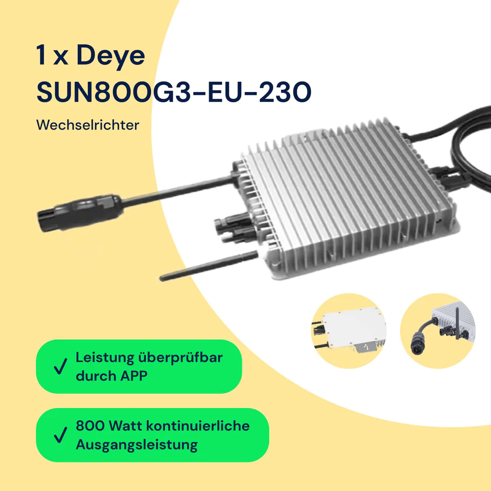 Beim mitgelieferten Mikro-Wechselrichter handelt es sich um einen Deye Sun800 mit 800 Watt inklusive Endkappe, der auf 600 Watt gedrosselt werden kann. Außerdem sind ein Anschlusskabel und zwei Solarkabel im Set enthalten. Das PV-Set ist mit einem Rabatt von 30 Prozent für 739 Euro zuzüglich 60 Euro Versand beim Händler AC Solar erhältlich.