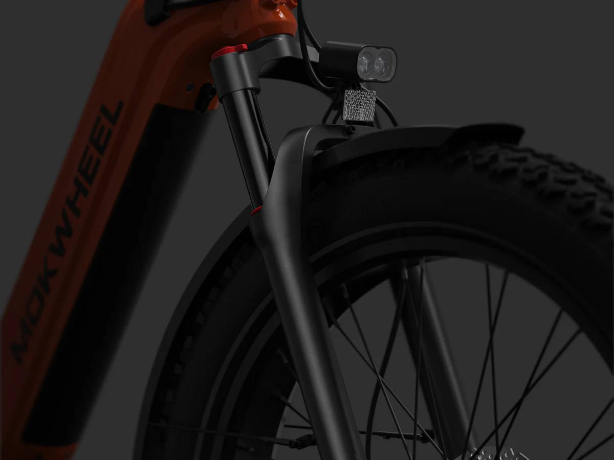 Das Basalt ST 2.0 ist ein E-Fatbike (das PVY Z20 Plus im Test) und kommt dementsprechend mit extrabreiten Reifen, mit solchen dürfte sich das E-Bike etwa auch für die Nutzung auf Sand oder sogar Schnee eignen. Verbaut ist auch eine Federgabel mit einem Federweg von recht langen 110 Millimetern, auch das zahlt letztlich auf die Geländegängigkeit ein. Mokwheel nutzt - auch wenn dies auf den ersten Blick vielleicht etwas anders aussieht - keinen Mittelmotor, sondern einen Nabenmotor mit einer maximalen Leistung von 500 Watt und einer Nenndauerleistung von 250 Watt, dabei wird der Motor in Abhängigkeit von der vom Fahrer aufgewendeten Kraft gesteuert.