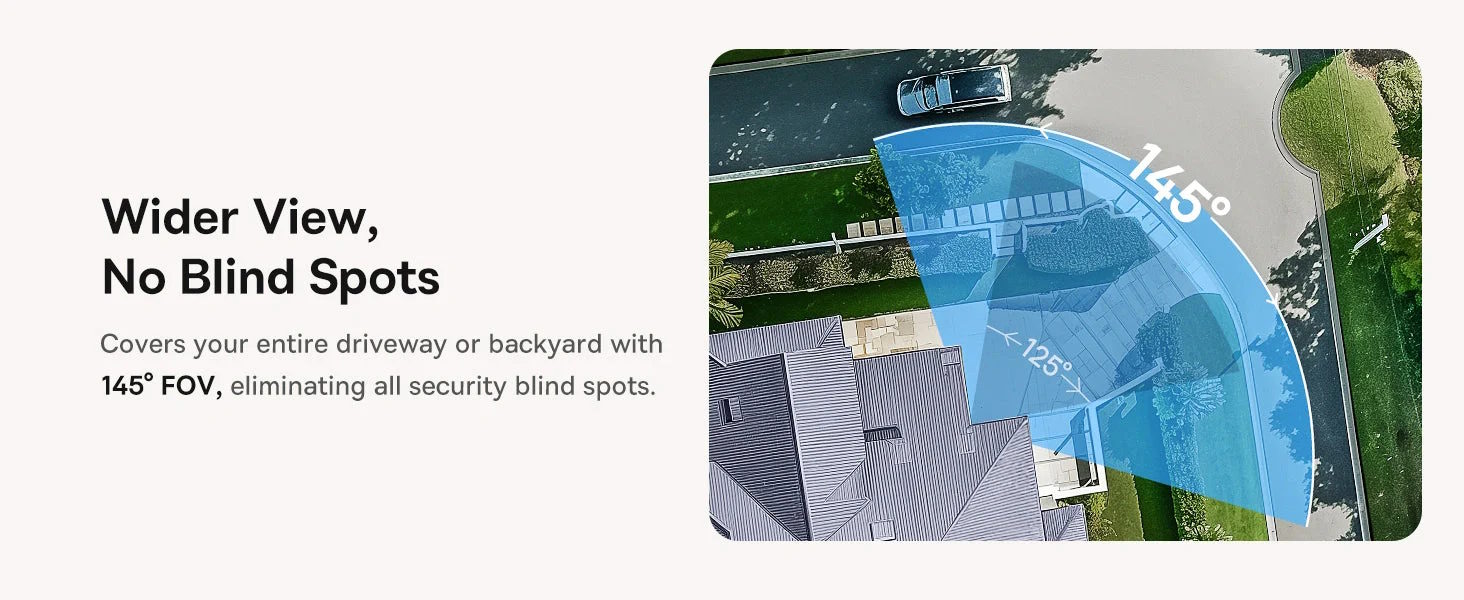 Das Ultraweitwinkelobjektiv soll einen Blickwinkel von 145° abdecken können, die Auflösung wird mit 2.304 x 1.296 Pixeln angegeben. WiFi im 2,4-GHz-Band wird zur Datenübertragung unterstützt. Installiert sind Lautsprecher, Mikrofon und eine Lampe mit 100 Lumen.