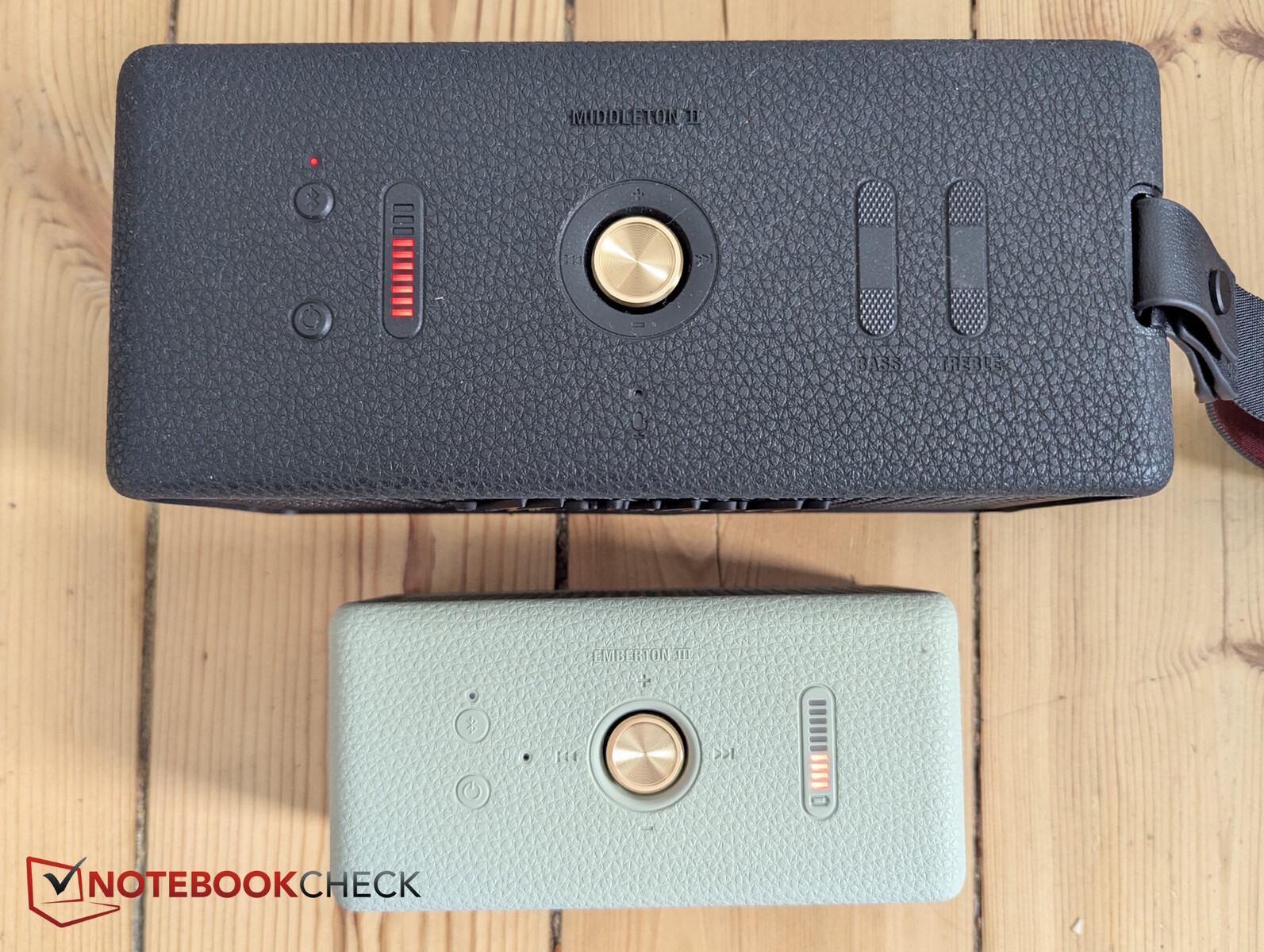 Neben dem Vorgänger teilt der Middleton II sein Aussehen teilweise auch mit dem kleineren Emberton. Nur dass dem Emberton die separaten Knöpfe für den Bass und die Höhen fehlen, die sich beim Middleton II direkt auf der Oberseite anpassen lassen.