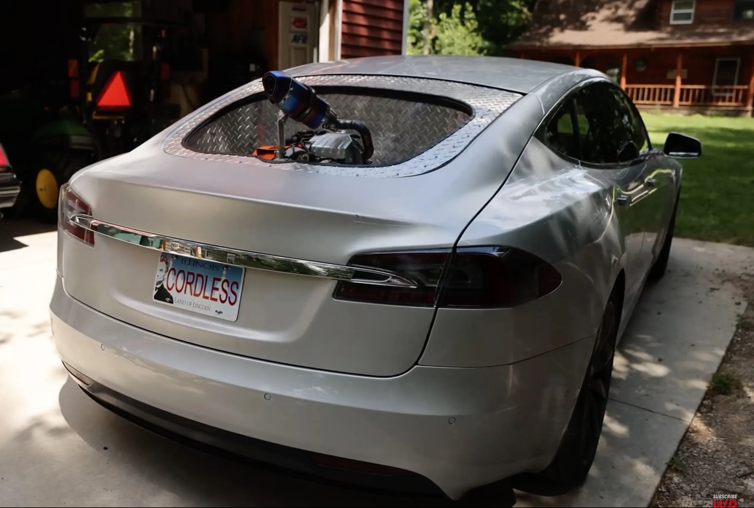 Hierfür hat der erfinderische Betreiber des erfolgreichen YouTube-Kanals "Warped Perceptions" einen kleinen Benzingenerator mit 400cc Hubraum und 13 PS offen im Heck seines Tesla Model S platziert, der die Batterie des Elektroautos während der Fahrt fortlaufend laden kann. Im Zuge seines Roadtrips im mittleren Westen der USA war somit kein traditioneller Ladestopp and einer Ladesäule notwendig, allerdings musste sich der experimentierfreudige Besitzer des Tesla Model S des Öfteren auf sehr niedrige Geschwindigkeiten beschränken, weil der kleine Generator nicht annähernd genug Energie lieferte, um den Ladestand des Elektroautos auch bei höheren Geschwindigkeiten konstant zu halten.