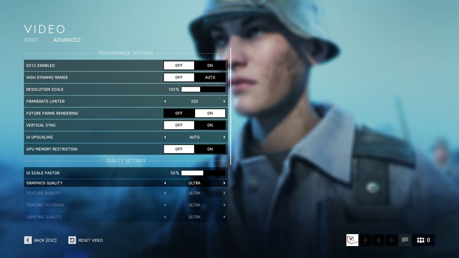 Achtung: Wenn die Option Resolution Scale nicht auf 100 % steht, nutzt Battlefield V Downsampling oder Upscaling. Den Menüpunkt Future Frame Rendering sollte man nach unseren Erfahrungen eingeschaltet lassen, wohingegen die GPU Memory Restriction für unsere Tests inaktiv war. Tuning-Füchse können sich weiter unten auch bei zahlreichen Detail- und Qualitätsreglern austoben. Wer keine Lust zum Experimentieren hat, verwendet einfach eines der vorgefertigten Presets.
