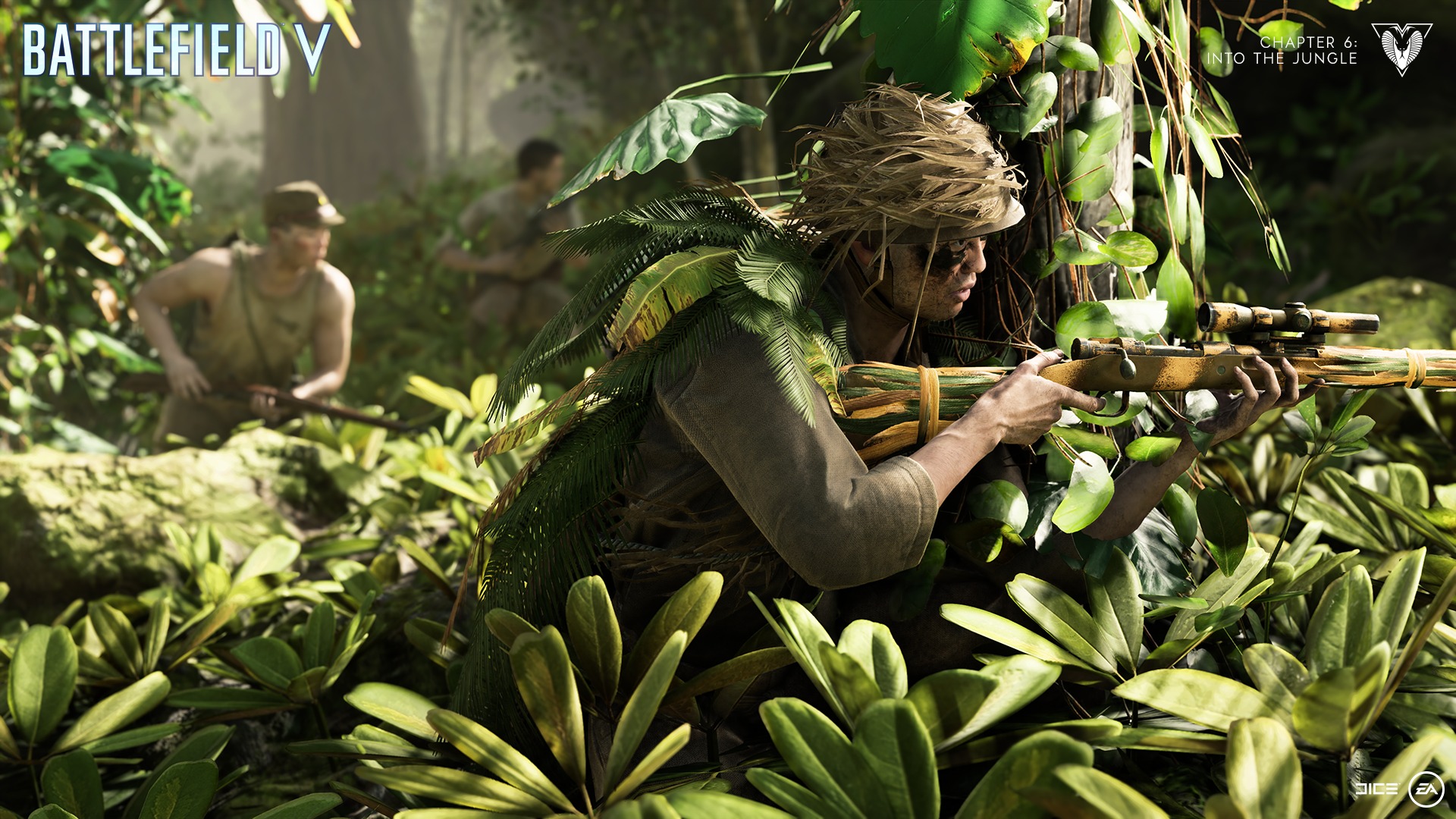 Drei neue Waffen und zwei Gadgets wie das Typ 11 LMG, die Schrotflinte Model 37, der M2 Karabiner, die M1A1 Bazooka und die verheerende Stoßmine lassen sich in "Battlefield V Kapitel 6: In den Dschungel" über Kapitel-Belohnungen freischalten. Kapitel 6 führt außerdem den extrem fähigen Angriffsspezialistin "Misaki Yamashiro", den furchtlosen Piloten "Steve Fisher" und den erfahrenen Zero-Piloten "Akira Sakamoto" als neue Elitesoldaten ein.