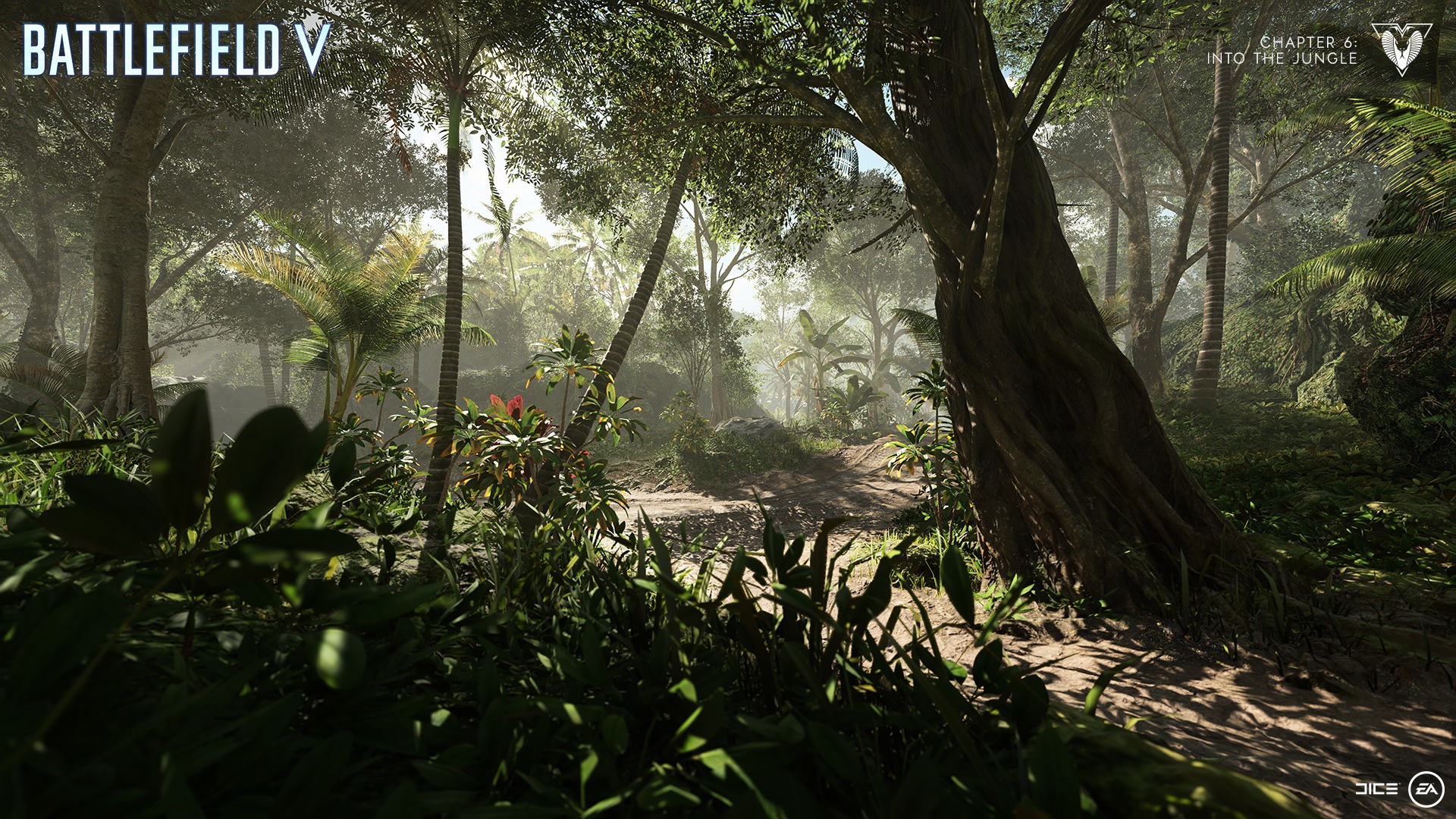 "Battlefield V Kapitel 6: In den Dschungel" verspricht nicht nur packende Nahkämpfe, sondern auch neue Waffen und Gadgets. Die Spieler kämpfen in den gefährlichen Urwäldern der Salomonen, die von düsteren Mangroven, verborgenen Bunkern, Flüssen und Sümpfen geprägt sind. Die Salomonen-Map von "Battlefield V Kapitel 6: In den Dschungel" verspricht intensive Infanteriegefechten im Dschungel und ist für den Einsatz von Land- und Wasserfahrzeugen konzipiert.